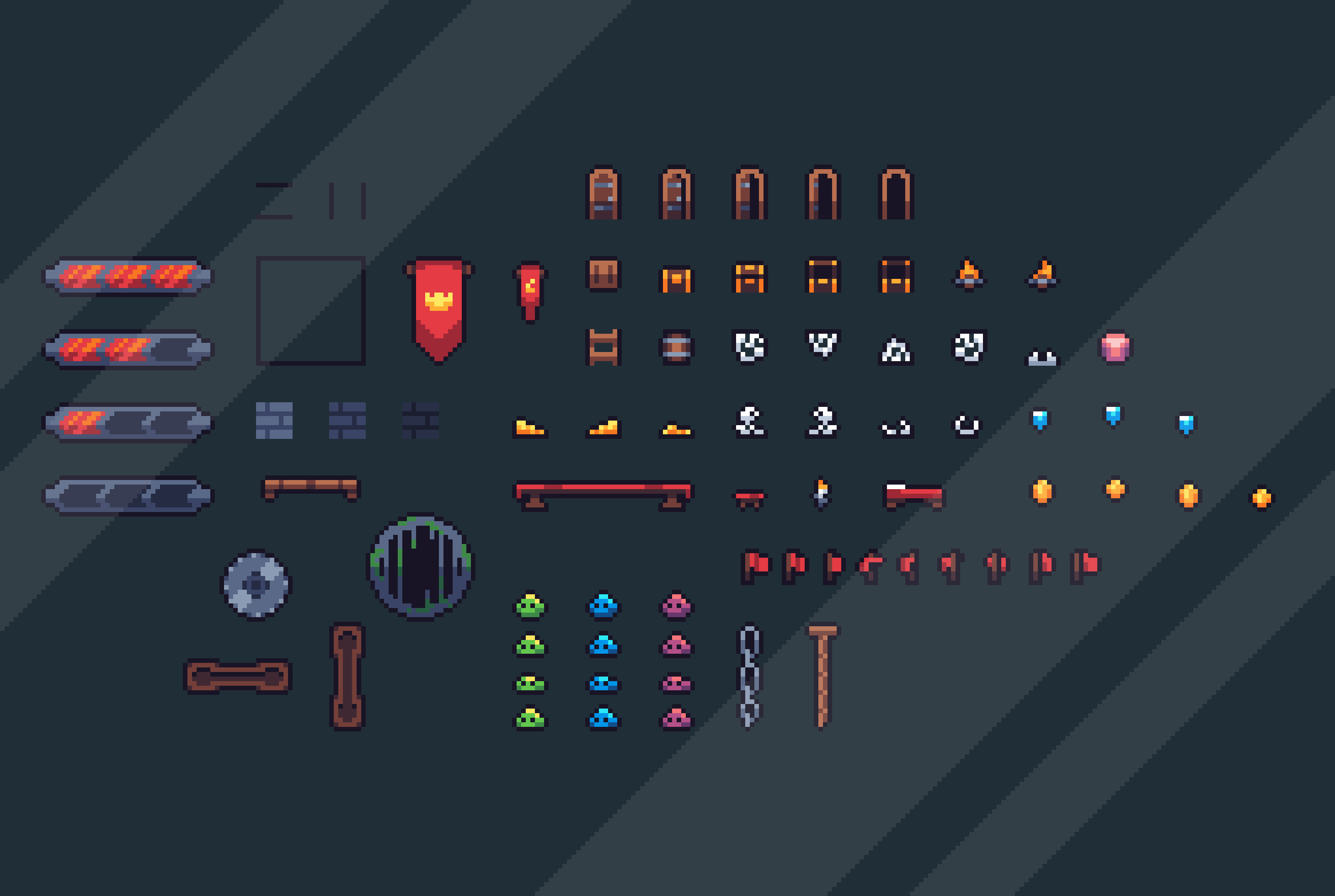 8x Adventures: Dungeon Starter is a solid base containing 105 tiles for 2D platformers, Metroidvanias, and rogue-like games. It features a range of assets to assist your creativity, including 5 animated objects and 3 varieties of slimes with idle animations. Enjoy using these assets, and let me know if you find them helpful.